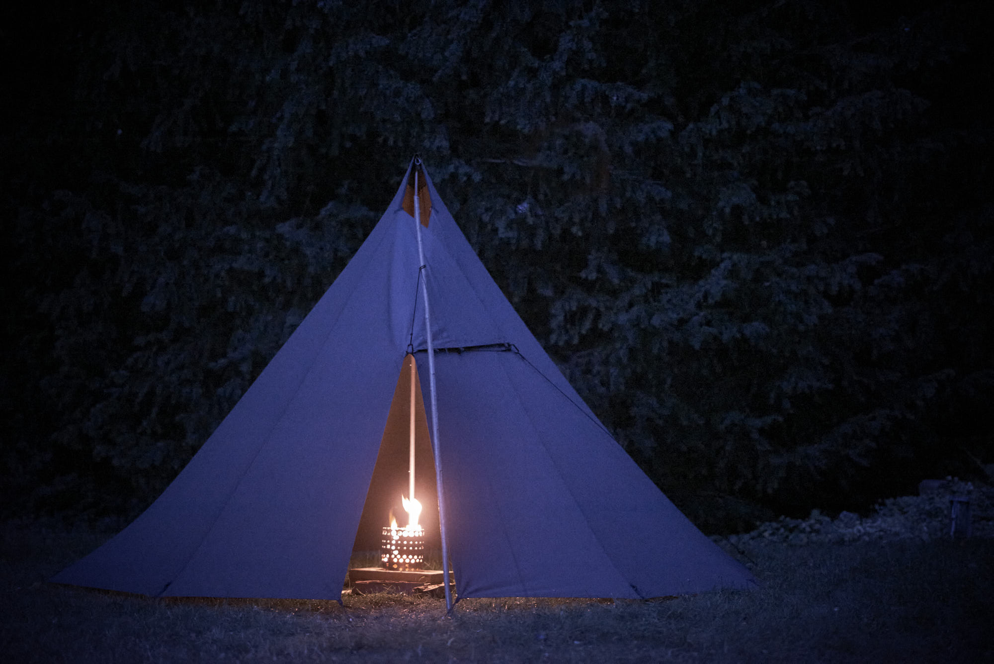 Mit vorbereiteten Stangen stand das Tarp im Test in nur 6,5 Minuten. Selbst in gemütlichem Tempo sollte das Lavvu in etwa 10 Minuten einsatzbereit sein.
