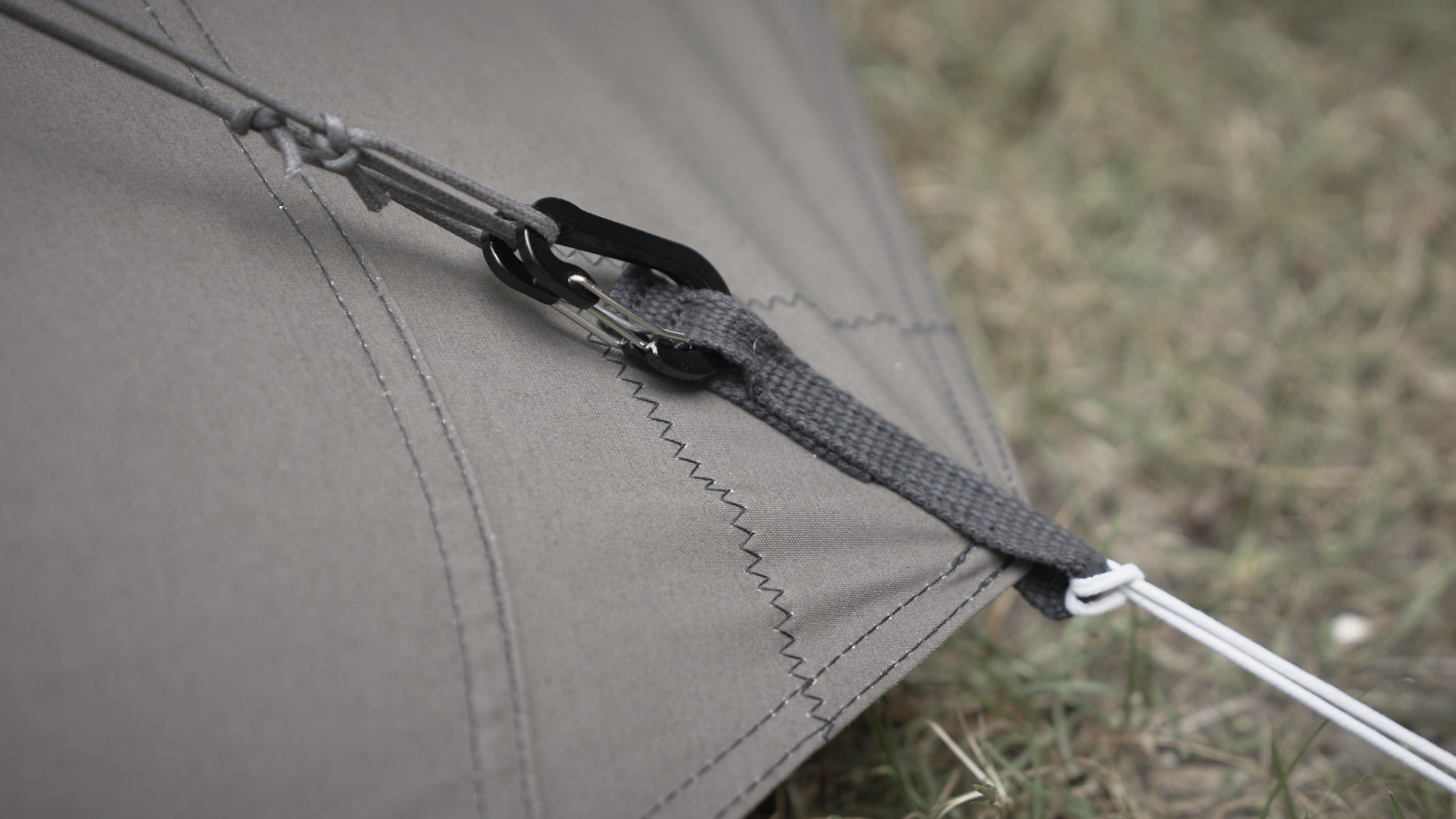 Verarbeitung sorgt für maximale Stabilität. Dank der vielfältigen Abspannpunkte steht das Tarp sprichwörtlich „wie in Stein gemeißelt“.