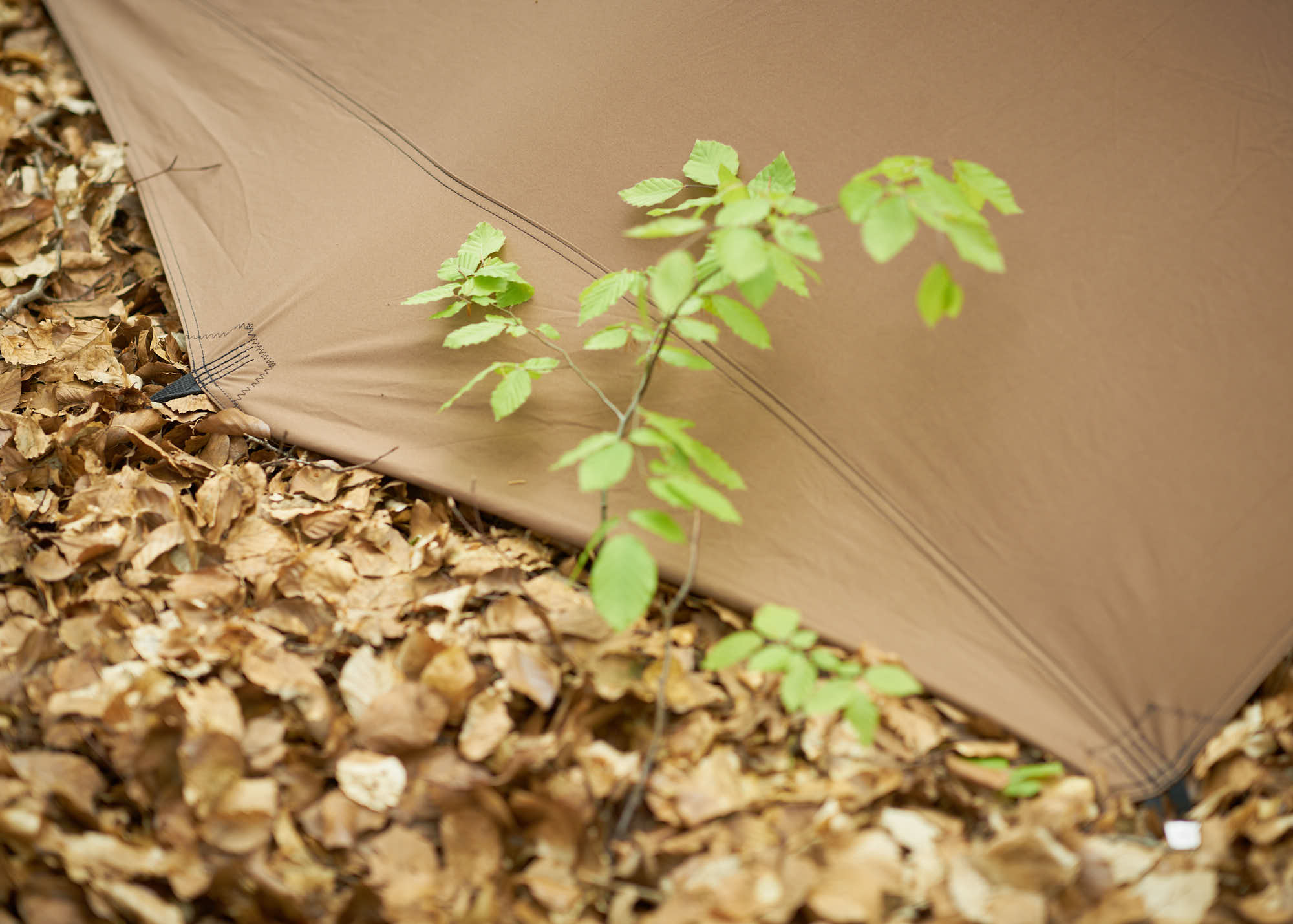 Der trapezförmige Schnitt ist zusätzlich für eine Erweiterung mit einem zweiten Tarp optimiert. Auf diese Weise kann ein Pyramiden-Zelt für zwei Personen erstellt werden. Zum gemeinsamen Sitzen